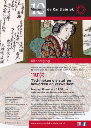 Ter gelegenheid van het 10-jarig jubileum van Museum De Kantfabriek in Horst zijn er gedurende 2019 verschillende tentoonstellingen te zien. Deze tweede expositie (19 mei t/m 25 augustus) toont, naast bijzondere stukken uit het rijke depot, ook een variëteit aan technieken, waarbij borduren, quilten en het maken van kleding als ambacht én vak centraal staan.