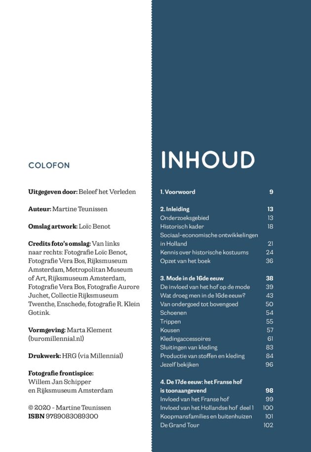 Op vier september verscheen 'Beleef Het Verleden. Een blik op vrouwenkleding in Holland van de 16de tot en met de 19de eeuw'. In dit boek neemt publieks- en kostuumhistorica Martine Teunissen je mee op een ontdekkingsreis naar de wondere wereld van de historische vrouwenmode, van hof tot burgerij tot platteland. De reis brengt je langs archeologische vondsten, museale collecties en schilderijen.