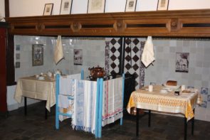 Door het hele museum staat het linnengoed volop in de schijnwerpers: het miniatuur linnenkabinet ontlokt iedere bezoeker een glimlach, de miniatuur mangel en linnenpers laten de zorg zien voor het linnengoed in vroeger tijden. Linnengoed was eeuwenlang hét statussymbool van de vrouw, daarom kerfde een jonge man in 1665 voor zijn aanstaande bruid in een mangelplank: ‘wit gewassen en net in de vouw, dat is een sieraad voor een schone vrouw’. Waarbij de ‘schone’ vrouw twee betekenissen heeft: zij is schoon én mooi. Twee gedichten over damast; een lofdicht uit de 17de eeuw en een klaagzang uit de 21ste eeuw zijn met rood linnen garen in blokletters op bijpassend linnen geborduurd.