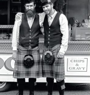 Schotten met hun karakteristieke 'sporrans'