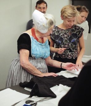 Zeeuwse Mw Vos geeft les aan leerlingen van de Meesteropleiding coupeur