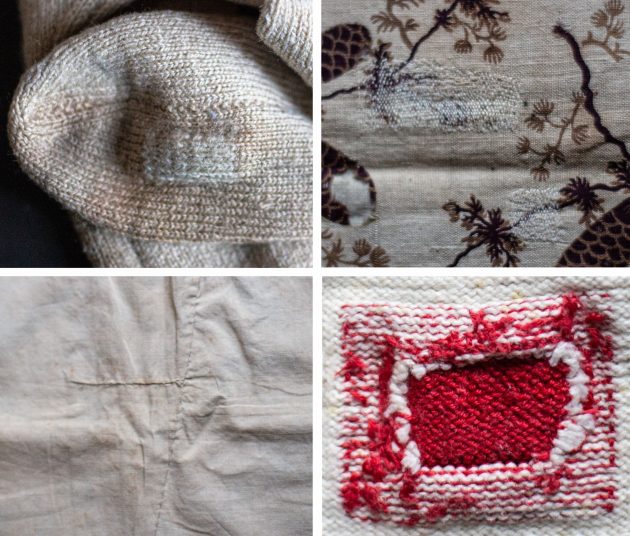 “Wie kan me helpen bij het verzamelen van “gerepareerde” weefsels, breiwerk,.. Ik denk aan sokken, truien, handschoenen, tafellinnen, theedoekjes, mutsen, bedlinnen,…. De herstellingen hoeven niet noodzakelijk mooi of perfect gerealiseerd zijn. Alle herstelwerk is welkom, ook al is het wat slordiger.