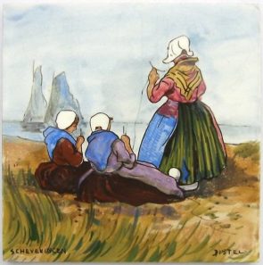 De Distel, Streekdrachttegel (Scheveningen), ontwerp Henri Cassiers, Coll B.J. Baas