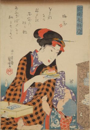 Utagawa Kuniyoshi, Een jonge vrouw met kind, 1844, houtdruk. Collectie Rijksmuseum Twenthe